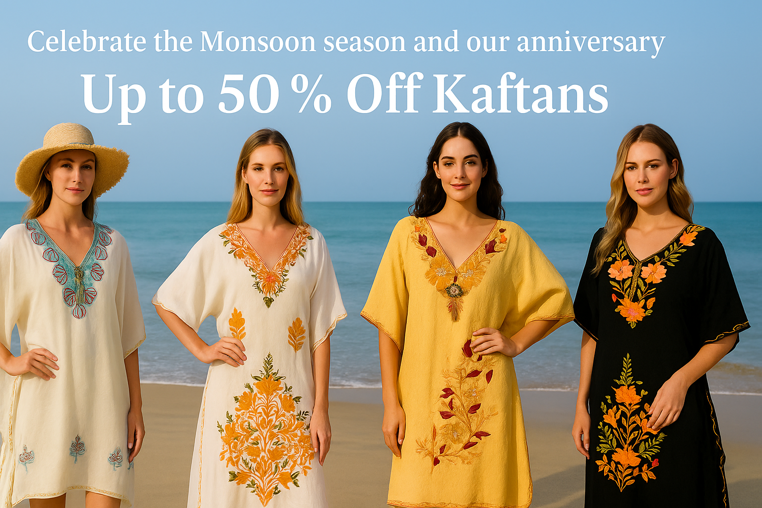 Experience the timeless grace of handcrafted Kaftans, designed to blend elegance with effortless comfort. Each piece is a tribute to India’s rich textile heritage — whether it’s intricate embroidery, flowy silhouettes, or breathable fabrics, our Kaftans are crafted for the modern muse who values both beauty and ease.