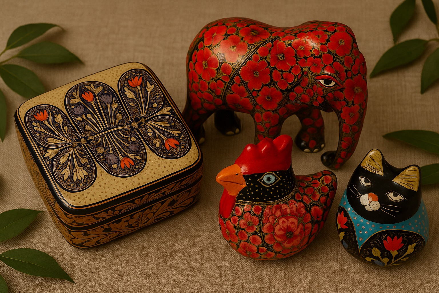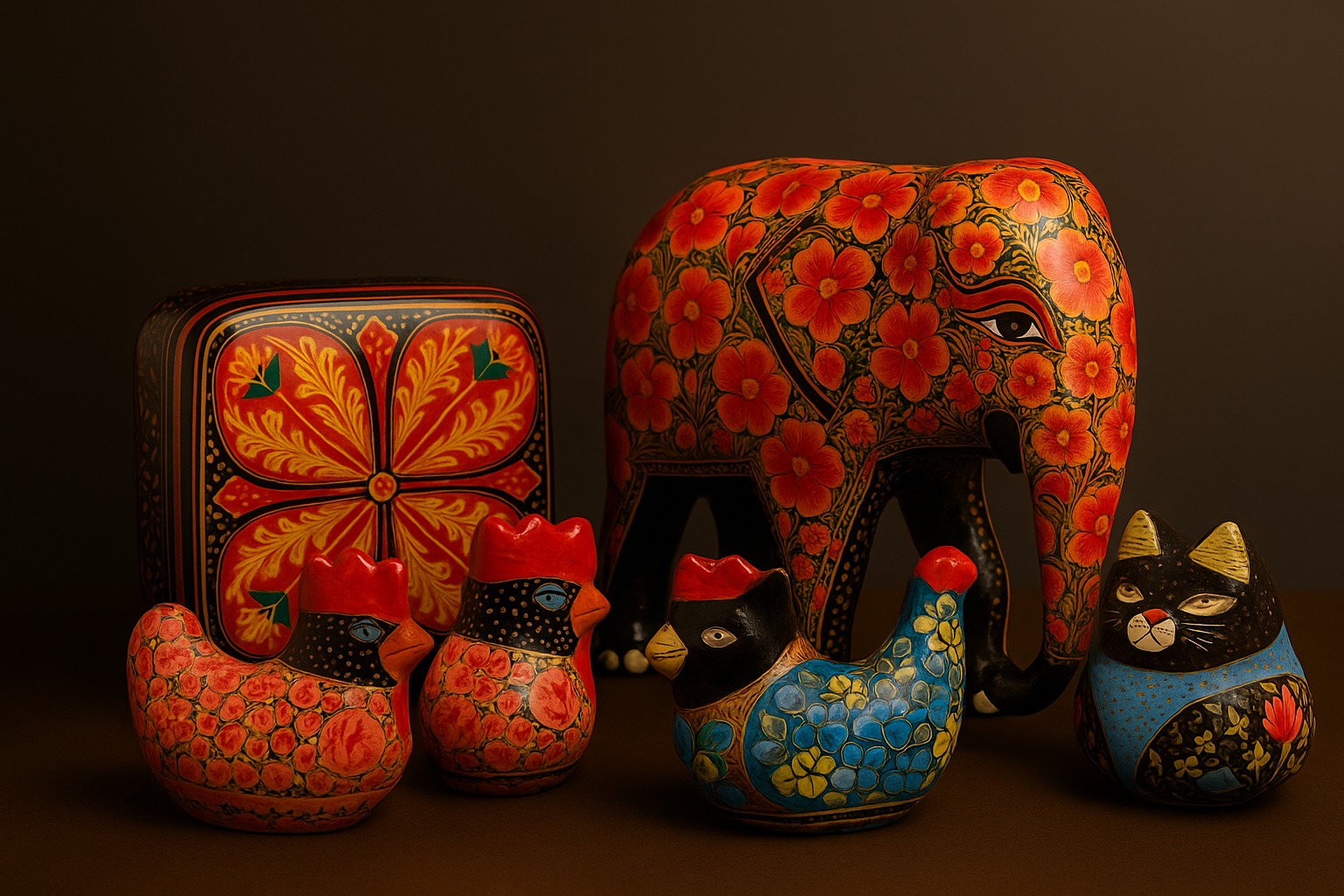 A Samaavi Paper Mâché creation is not just décor — it is a piece of Kashmiri heritage. Handcrafted using age-old techniques, each piece is shaped from paper pulp, carefully dried, and then hand-painted with intricate floral and traditional motifs. From boxes and ornaments to animal figurines and clutches, every design reflects centuries of artistry and storytelling.